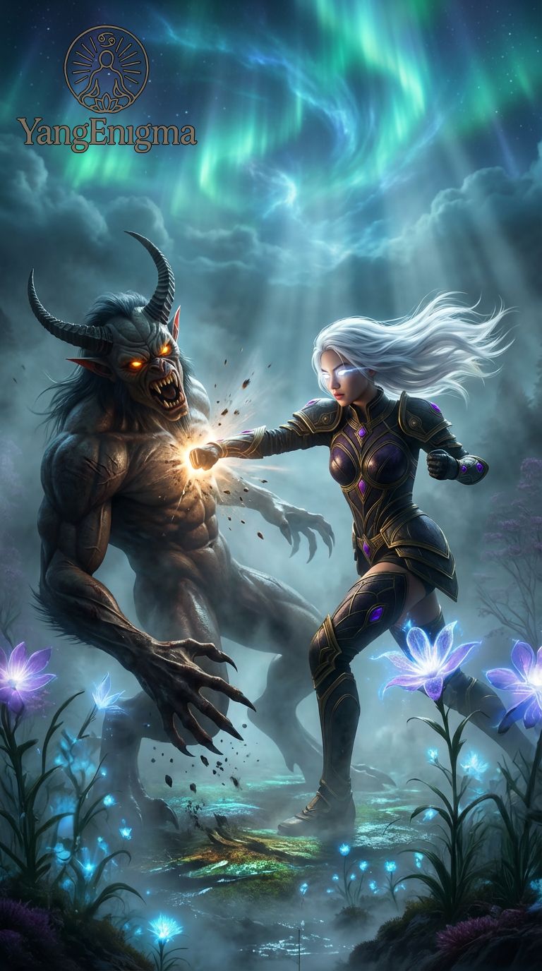 Kaelith gathers power and releases a clean arc of frequency directly into the Warden’s head. The impact splits the air itself.